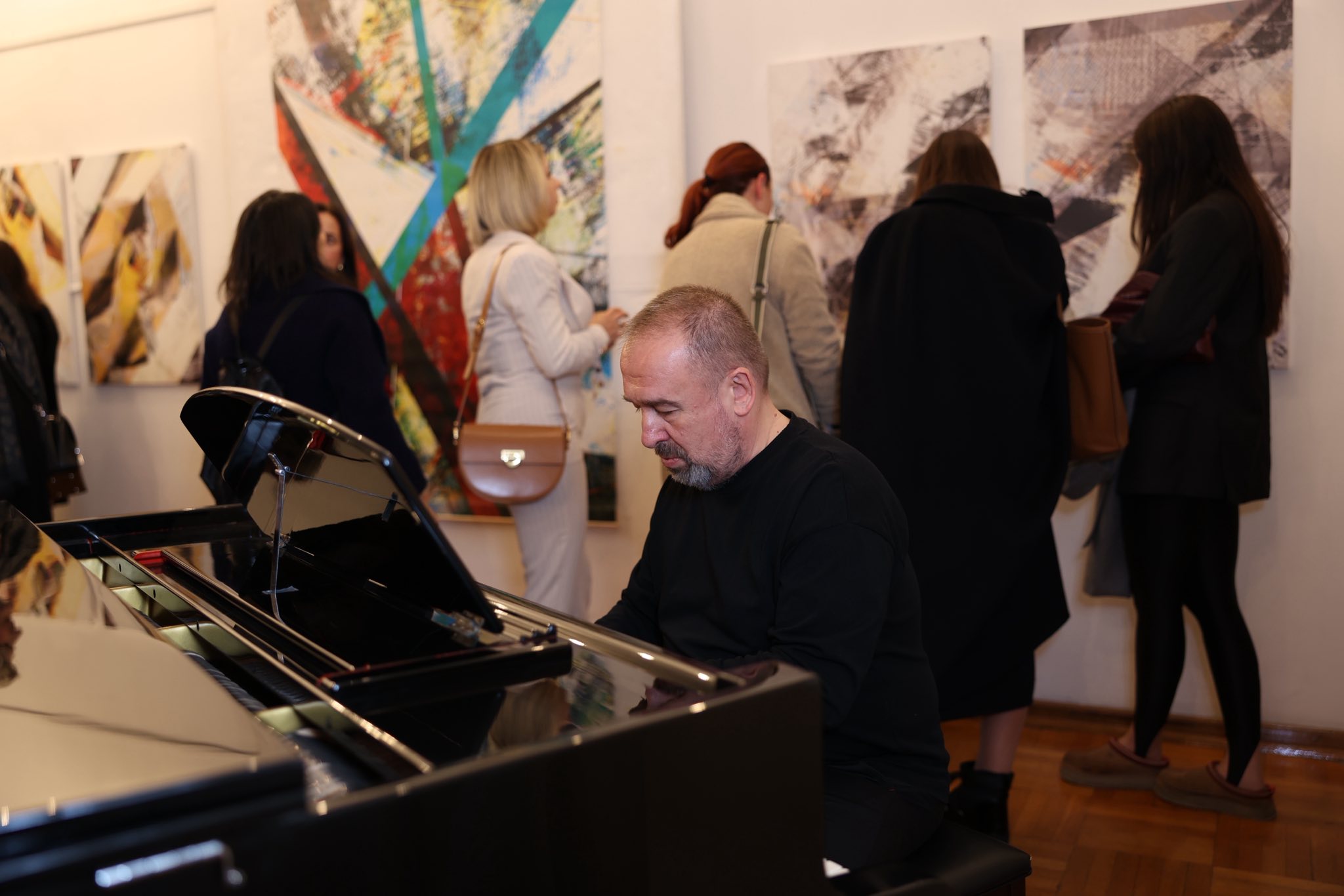 На отварању изложбе пијаниста Динко Благојевић извео је клавирске импровизације инспирисане поставком чулности.